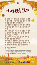 Calgary God's Family Church 알림 1. 샬롬! 주님의 이름으로 환영합니다. 축복합니다.2. 오늘은 11월의 첫 주입니다. 2025년 남은 두 달을 소중하고 값지게 보내기를 바랍니다. 3. 다음주 목장모임이 있습니다. 목장별 모임 시간과 장소는 목장의 단체 카톡에 공지합니다. 4. 다음주 성경봉독은 김수영집사, 기도는 한신집사입니다. 5. 오늘 설거지 봉사는 이진식목사 가정, 다음주는 한신집사 가정입니다. 6. 금주 수요예배는 이기형목사님이 인도하시고, 다음주 수요예배는 이진식목사님이 인도하십니다.7. 함께 동역하는 손봄들선교사(몽골), 이진석선교사(브라질 아마존), First Step(북한기아아동), 캘거리미래교회(홍효성목사)를 위해 기도해 주시기 바랍니다.